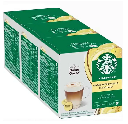 STARBUCKS Capsule di caffè Vanilla Latte Macchiato De Nescafe Dolce Gusto, 36 unità (confezione da 3x12 capsule)